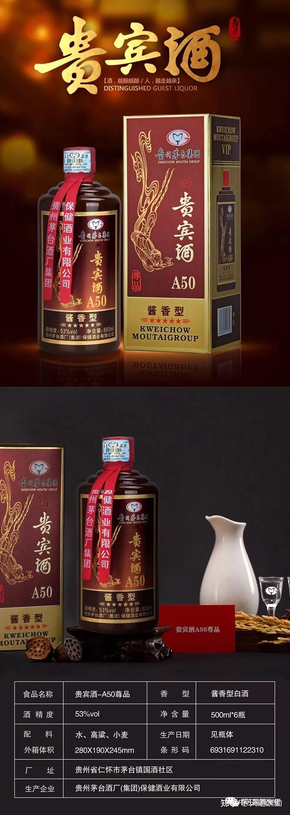 贵宾酒A50五星酱香型白酒是贵州茅台集团麾下的保健酒业有限公司生产的一款酱香型尊品白酒。