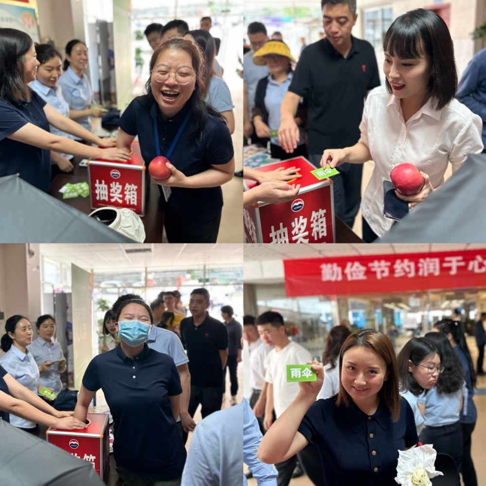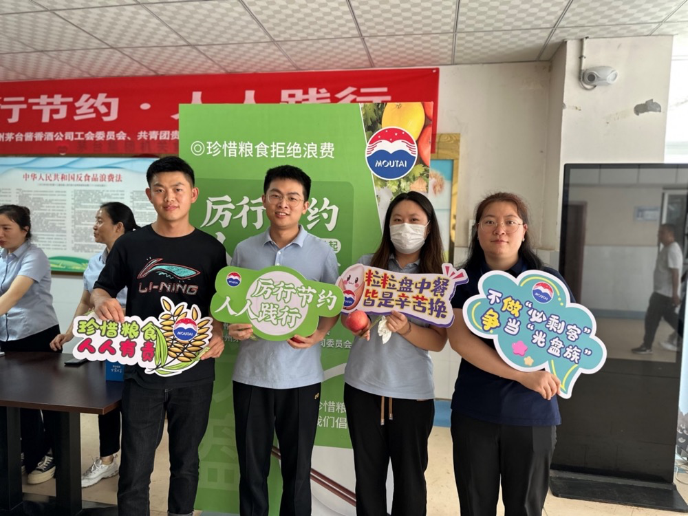 活动过程中,酱香酒公司志愿者在餐具回收处向光盘员工发放“盲盒抽奖券”,并向员工发起“厉行节约·人人践行”的倡议,员工可凭抽奖券在机关食堂门口现场抽奖,领取纪念品。