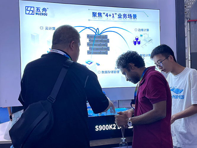 本次广电五舟在W2数字产业馆展出了“广电五舟推理服务器S800K2、广电五舟训练服务器S900K2、广电五舟智能边缘服务器S500K2、广电五舟青松台式机S198K1”四款重磅智算产品,吸引众多国内外参会嘉宾驻足了解咨询。
