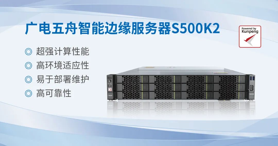 广电五舟智能边缘服务器是基于鲲鹏920处理器的2U智能边缘服务器,具有超强计算性能、高环境适应性、易于部署维护和支持云边协同等特点,可应用于园区、商超等复杂环境。