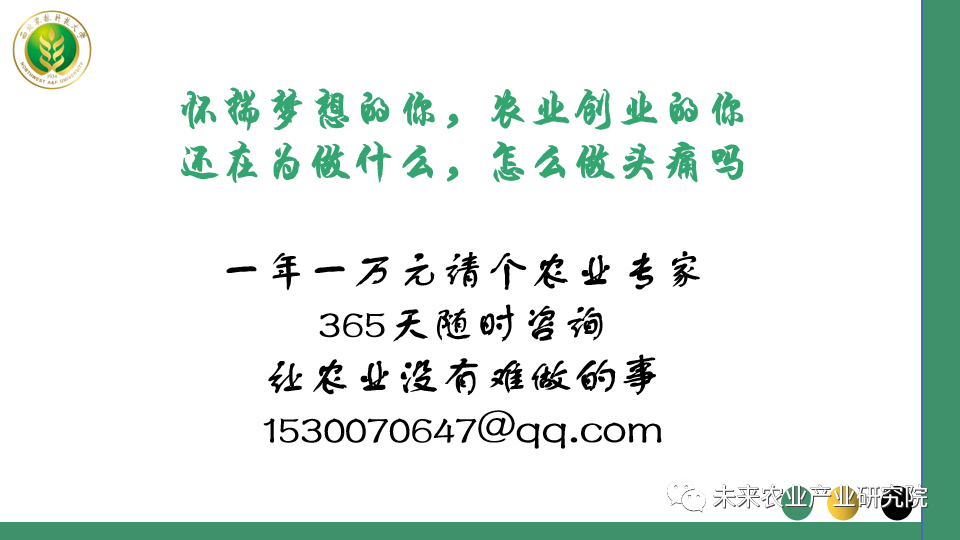湖北省未来农业产业研究院,是西北农林科技大学校友乡村振兴平台,农业全产业链创新实践机构。研究院以未来农业发展视野,对标国际先进经验,结合中国实情,提供全新模式和解决方案,整合校友及相关资源,服务农业企业、各级政府农业农村部门