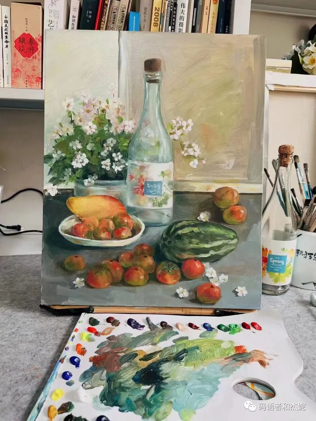 春天起泡甜白:年份2019.产区澳大利亚,品种莫斯卡托。高泡,有黄柠檬、苹果和蜂蜜的风味,甜美适饮,酒精度6.5。注意:冰镇后再喝,口感会更好,建议饮用温度在5-8度。塞子为蘑菇塞,开瓶千万小心,不要对着自己和易碎物品。另外感觉平台的粉丝好有才啊,居然把这瓶画成了油画: