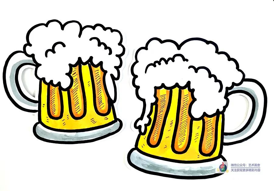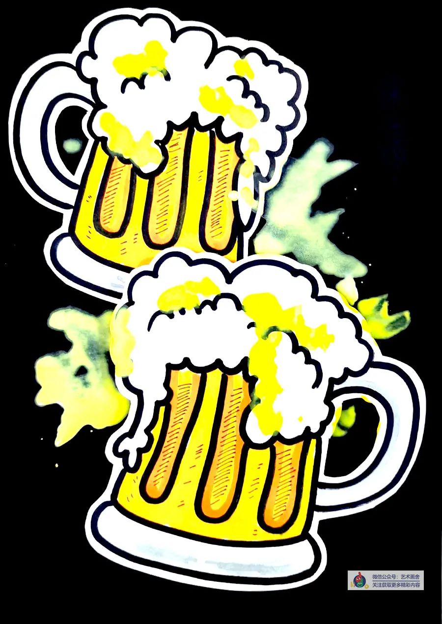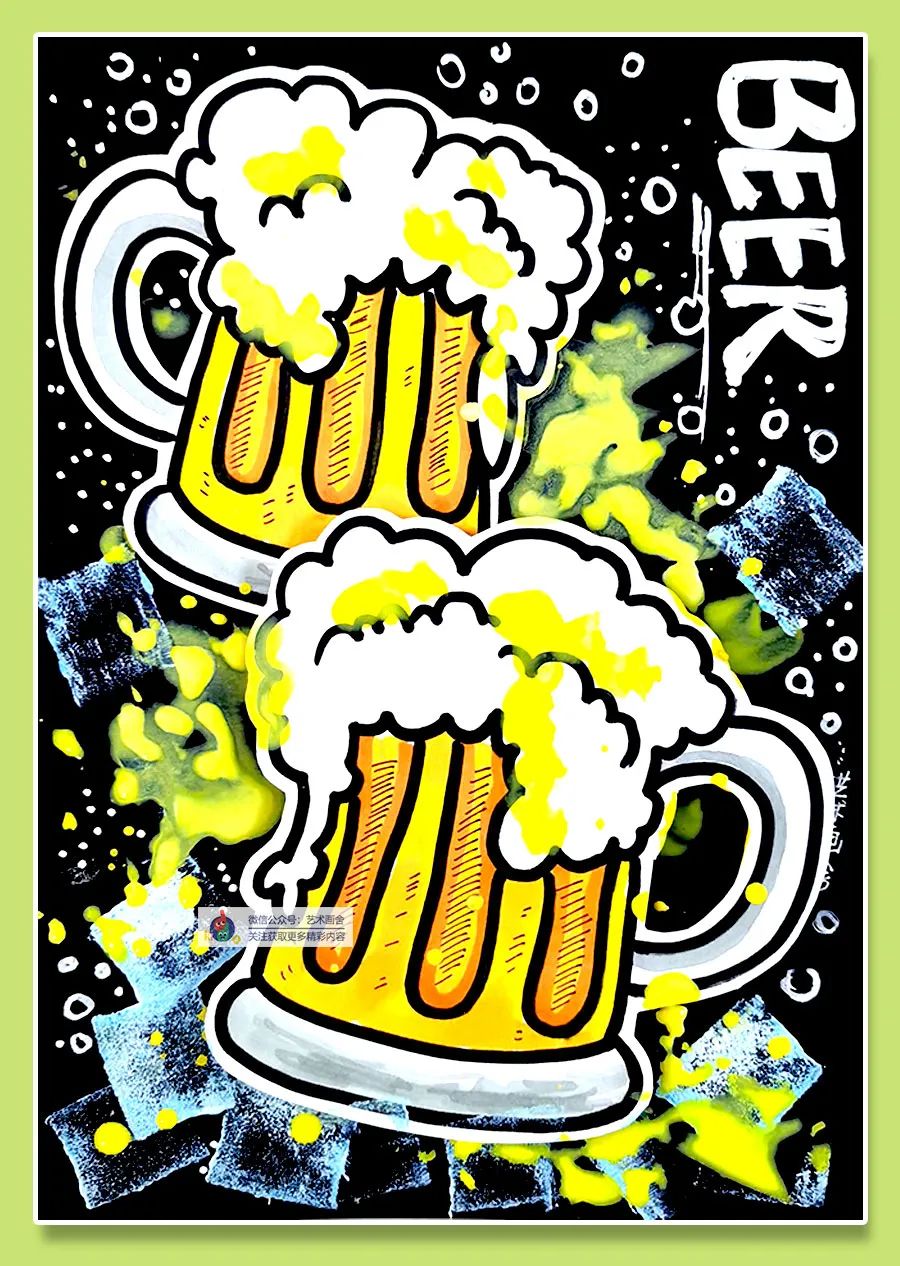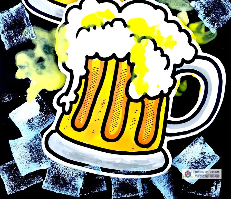 儿童画教程 | 综合创意画--一扎冰镇啤酒!