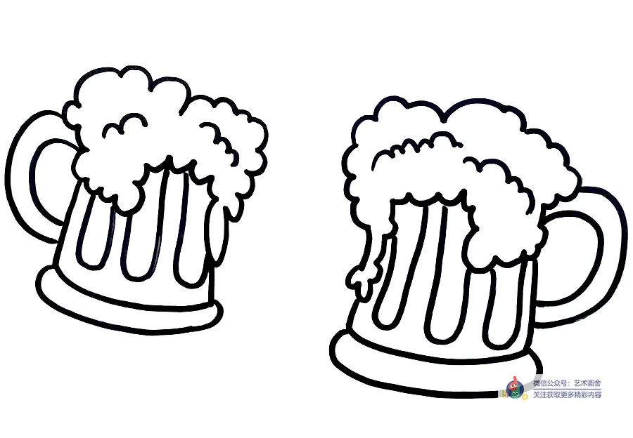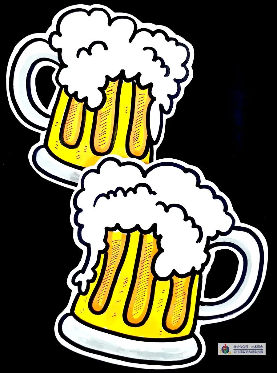 虽然啤酒解暑,但是我们小朋友们不能喝哦!接下来我们以啤酒为主题来画一画吧!