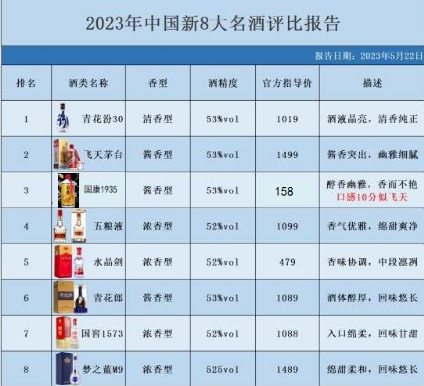 2023年酒协公布:中国新8大名酒排行榜出炉,茅台第一宝座不保!