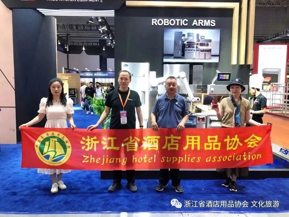 5月29日上午九时,第三十一届上海国际酒店及餐饮业博览会隆重开幕。开展伊始即人潮涌动,川流不息,让来自全国各地的人们感受到了三年疫情后酒店餐厨业的勃勃生机。浙江省酒店用品协会秘书长蒋昭爱携秘书处及餐厨行业精英,带队前往协会会员展馆及关心协会健康发展的行业大佬展馆现场进行交流,感谢他们为协会扬帆起航所做的贡献,期盼大家尚需一如既往地支持协会的健康发展,拥护协会理事会领导集体决议和战略部署,多提合理化建设性意见!最后蒋秘书长受会长王黎明委托向参会的兄弟商协会及行业大佬致以深切的问候并欢迎行业同仁莅临协会指导工作!