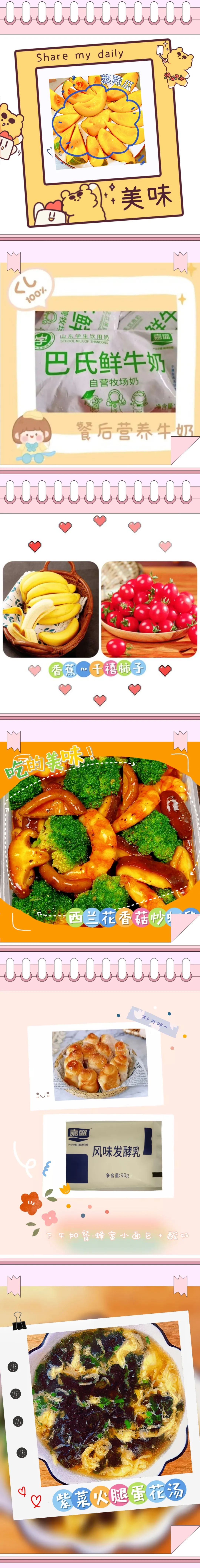 西兰花香菇炒虾段、小油菜豆干炒鸡蛋