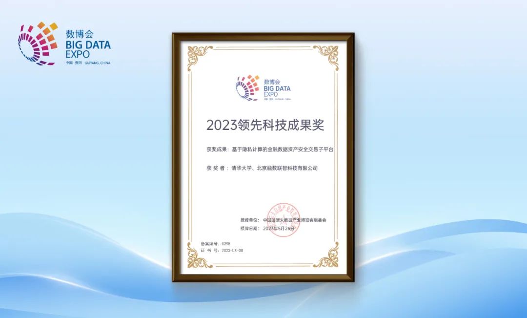 其中,清华大学(互联网产业研究院)与北京融数联智科技有限公司合作申报的“基于隐私计算的金融数据资产安全交易子平台”项目获评数博会“2023领先科技成果”。