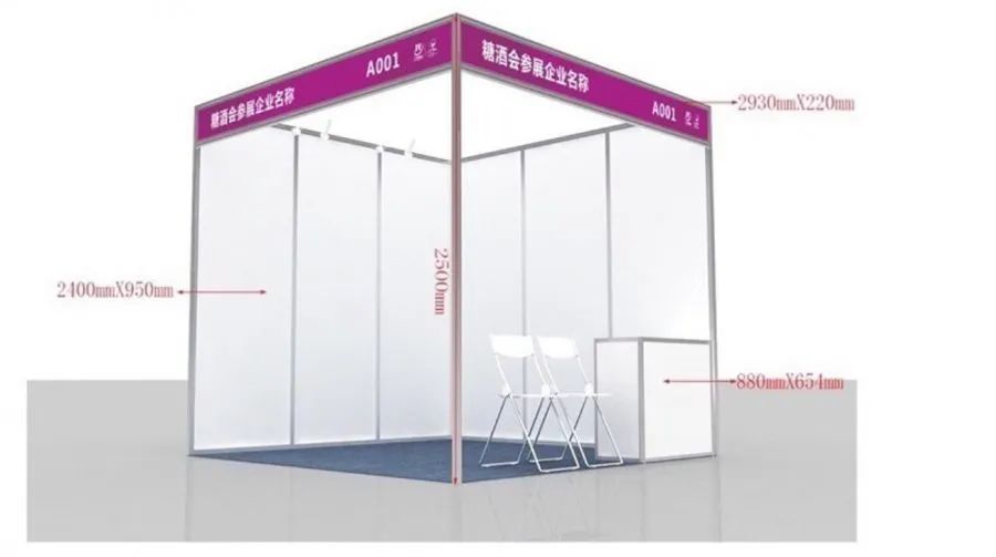 配置:三面围板(双开口两面)楣板一条(双开口两条)220V/5A电源一个、一桌两椅、射灯2支