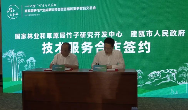 5月27日,第五届中国笋竹产业成果对接会暨首届中国笋食品交易会在建瓯市举办,来自全国各地的专家、企业家欢聚一堂,为中国笋竹产业发展献计献策。中国竹产业协会秘书长杨淑艳、莆田学院副院长、福州大学教授刘明华、国际竹藤中心科研处处长杨淑敏、福建省林业科学研究院院长黄云鹏、国家林业和草原局竹子研究开发中心研究员、福建协同创新院竹产业建瓯分院院长吴良如及我市领导叶财旺、王建明、丁炳锋、叶莉参加活动。