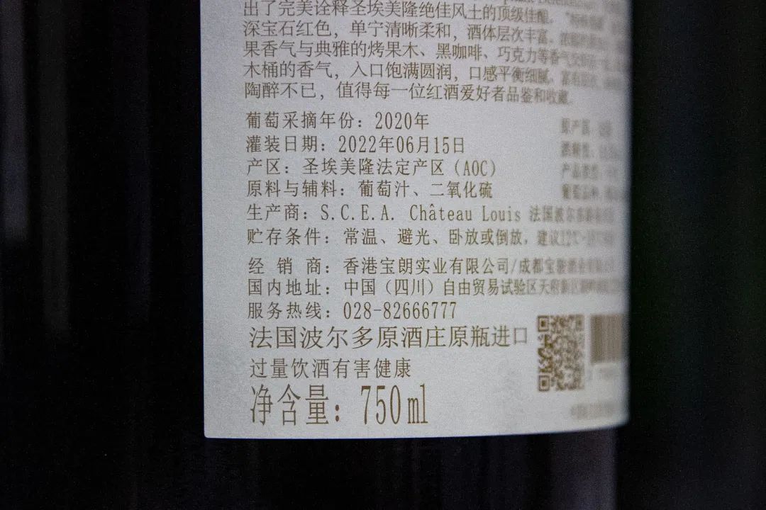 酒瓶的标签之上,通常包括了酒庄的名称,酒的名字,葡萄酒的品种,酒的容量、酒精度、出产国和出产年份等,对于懂酒的人来说,年份十分重要,往往一瓶好的红酒一定产于好的年份。