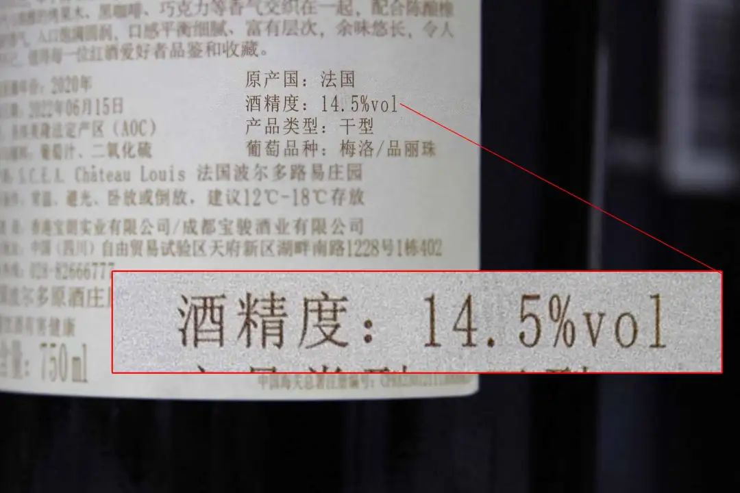 酒精度是葡萄酒标签中必须标注的内容。按照葡萄酒标准的规定,葡萄酒酒精度不应低于7%,正常工艺加工的葡萄酒的酒精度应该在11%左右,一些特殊的产品可在7%~24%之间。