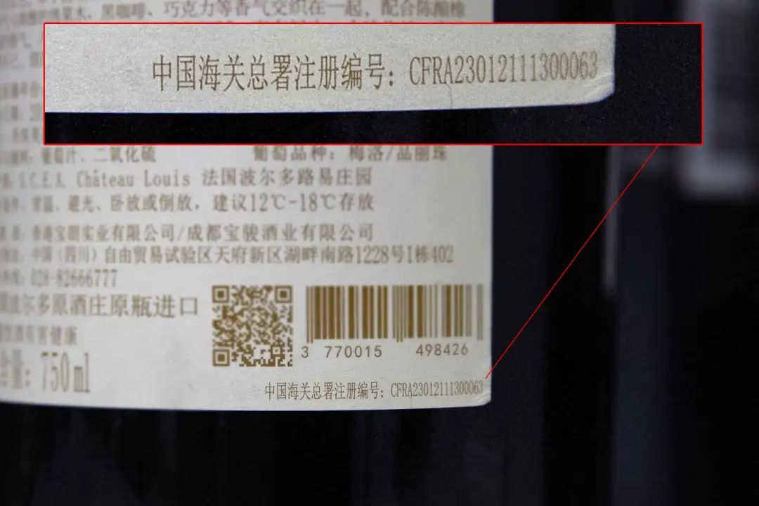 进口红酒标签的识别,认准中国海关总署注册编码,不是说没有就一定是假进口红酒,但是如果有这个编码,能通过查询知道这个是不是真的进口红酒,也是红酒进口身份的保障。