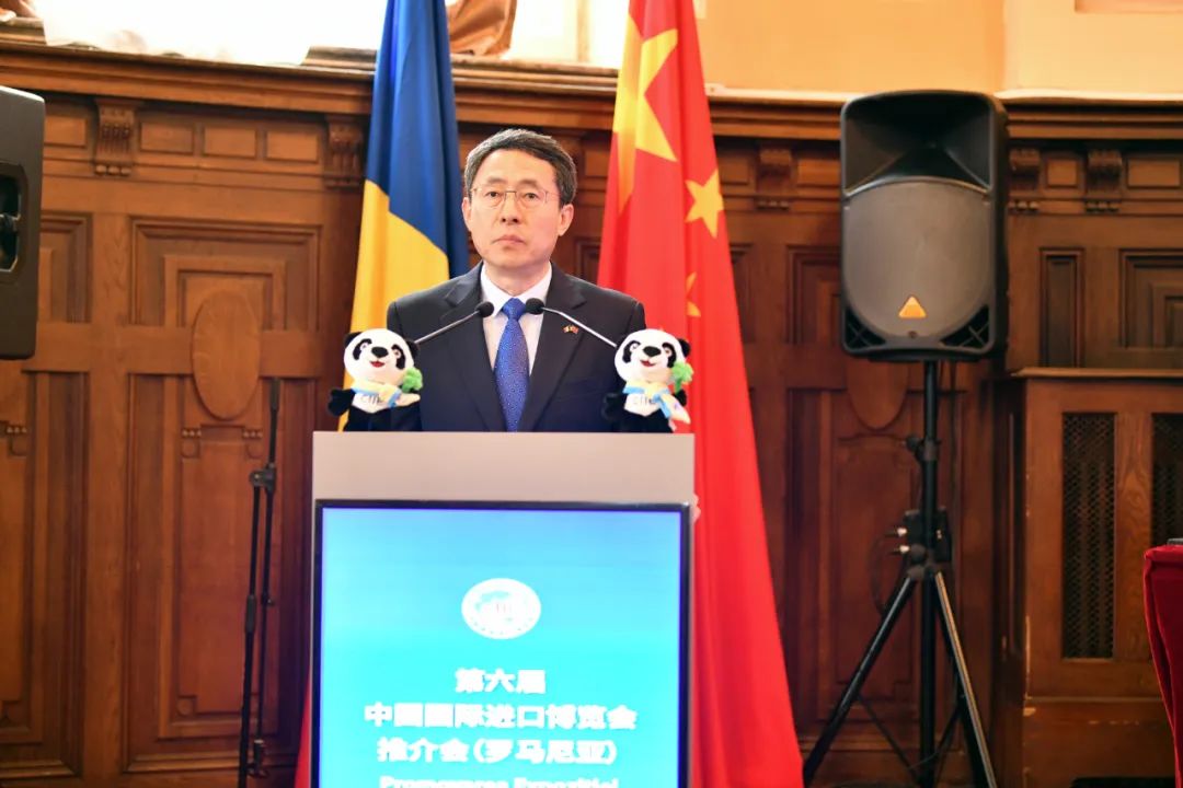 5月29日,第六届中国国际进口博览会罗马尼亚推介会在布加勒斯特市举行,中国驻罗马尼亚大使韩春霖出席,国家会展中心(上海)副总裁时煌军进行推介,宋先茂经商参赞主持推介会。