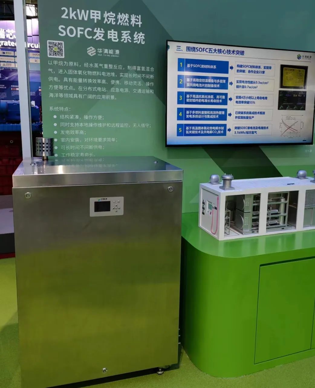电池寿命超过3万小时,是行业均值的两倍;能量转化效率达52%,比行业均值高10个百分点,发动机提速快,从总速到平稳运行最大功率点的动态响应时间小于3.2s,比行业均值缩短60%,关键性能指标位居国内前列。