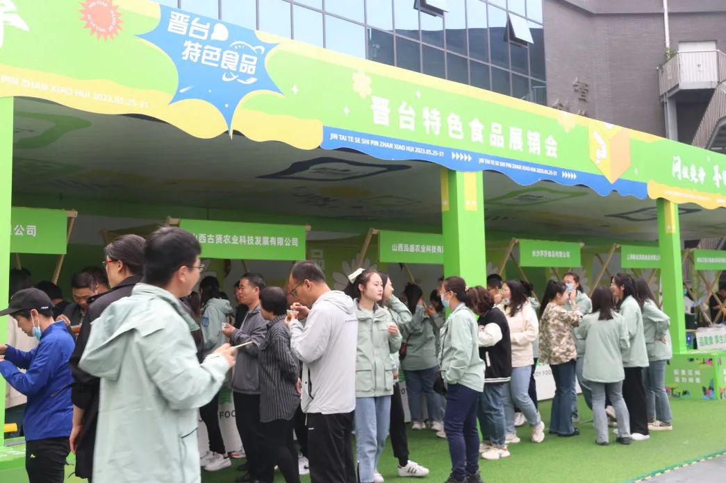 来到展销会现场,展台前整齐摆放了台湾风味肉粽、平遥牛肉、阳城烧肝、山楂果酒、甜品马卡龙、黄芩茶、黄梨汁等200余种特色优质产品,参观人员边听边看边交流,品尝特色食品,感受舌尖上的美味与文化上的交流。