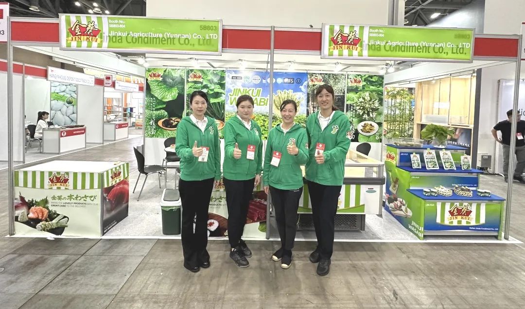 此次展会“金葵的产品展区”重点展示了“山葵酱”系列产品。“金葵山葵酱”膳食纤维丰富,呛辣适中,辛香爽口,回甘醇厚,口感丰富,搭配烤肉还可以提鲜解腻,赋予了烤肉这一充满烟火气息的美食一种别样的美味。而在“金葵云南山葵产业基地”展区,金葵基地特产的山葵叶,叶片肥厚宽大,较之烤肉店常见的苏子叶更加汁水饱满,清香适口。而山葵在抗菌、抗癌、预防血栓、护肤美容、调节肠胃功能、提高人体免疫力等方面的显著功效,更令这一高端美味成为高净值人群中的“圈层美食”。