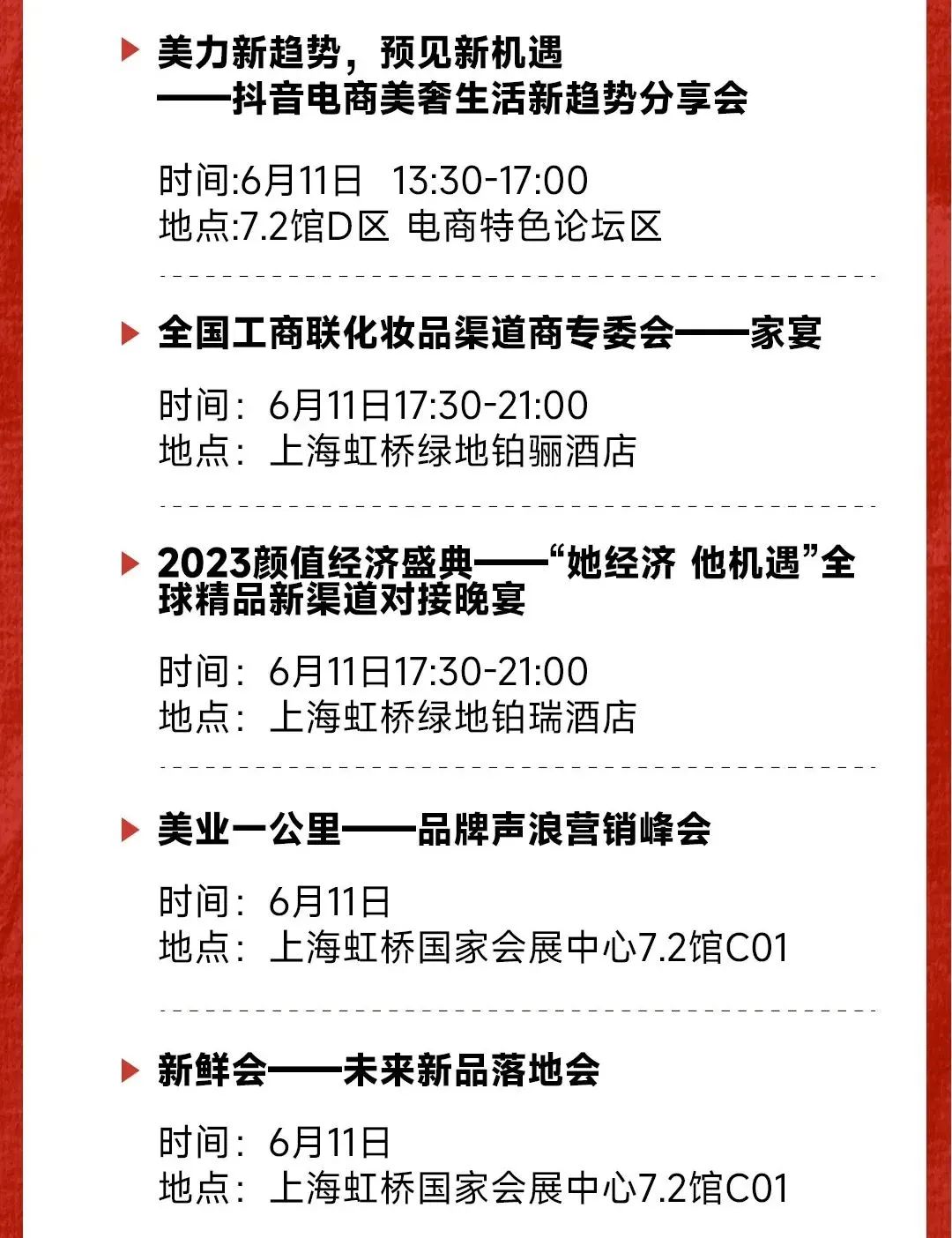 本届美博会,我们着眼行业热点和痛点,推出了覆盖电商新渠道、百货零售、数字美容、男士理容、科技创新、包装设计、品牌赋能等领域30余场特备主题活动,将与大家共同启动这场万众瞩目的思潮盛宴。