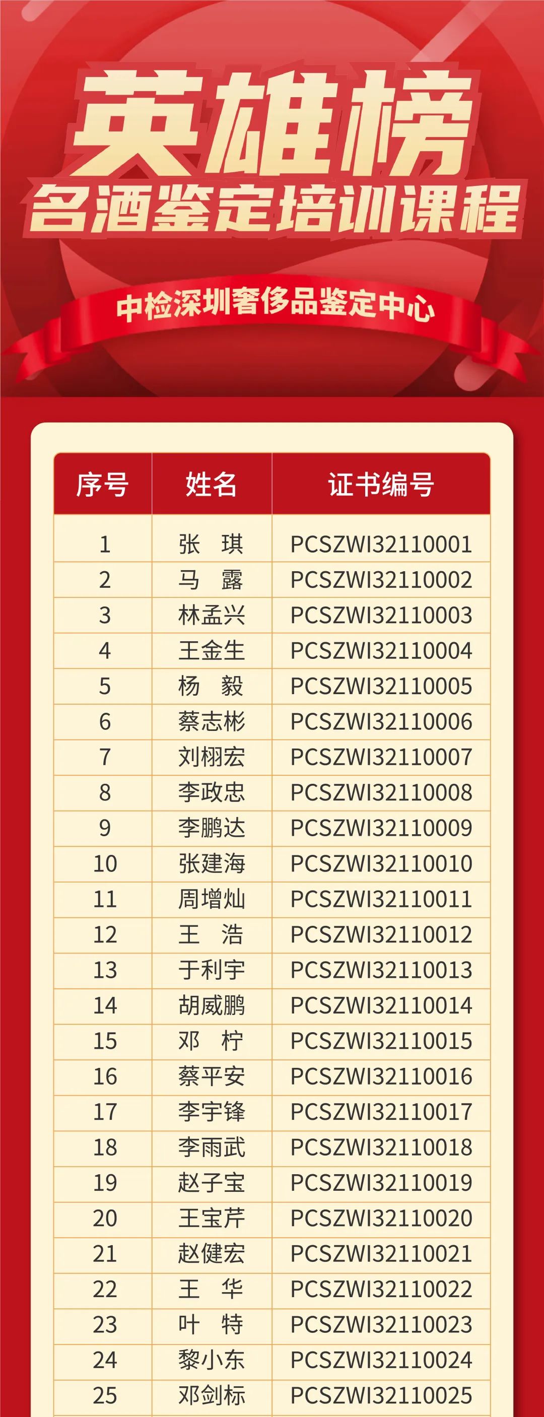 根据中检深圳奢侈品鉴定中心能力认证资格证考试要求,2023年5月奢侈品名酒鉴定能力考试工作已结束。经中检深圳奢侈品鉴定中心严格审核,现将考试结果予以公布: