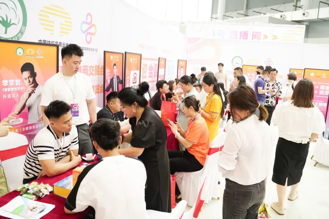 展会现场互动频繁,贸易洽谈气氛热烈,涵盖私域百强团长、社群平台、私域团队长、抖音、快手精选联盟团长、抖音、快手、淘宝主播选品团队等带货渠道,面对面洽谈,一对一推品。更有临沂头部主播悉数到场,现场交流现场对接。展会同步开启“让好物上链接”现场直播,众多直播间人气节节升高。