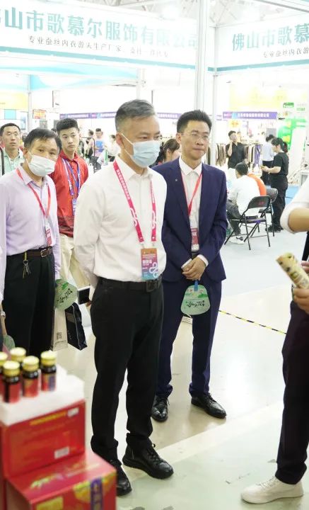 中国纺织品商业协会会长雷利民,山东省商务厅市场建设处一级主任科员韩晓晨,中国纺织品商业协会会长助理史研,秘书长王江波,中国纺织品商业协会内衣委员会会长彭桂福,临沂市电子商务产业促进会会长周平如等出席开幕仪式,并巡馆了解本次展会盛况。
