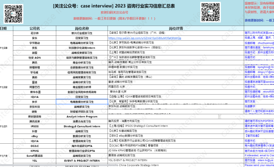 2023咨询行业实习汇总表(实时更新) 咨询行业面经资料 咨询求职简历模板 更多其他资料....