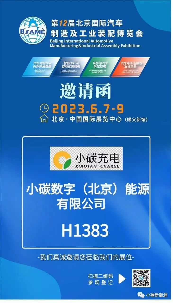2023第十二届北京国际汽车制造业博览会将于6月7日-9日在中国国际展览中心(顺义馆)隆重举行,小碳也将入驻展会,为大家展示不一样的充电桩。