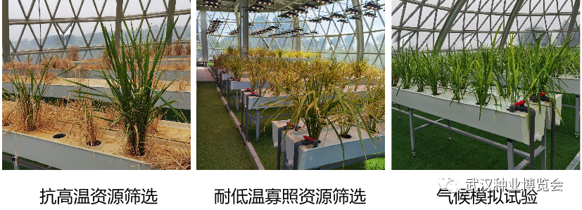 高光效和气候模拟实验室,采用人工智能技术,集成温、光、湿、气系统,实行水肥一体化管理,可模拟高温、强光、低温、寡照等各种极端气候,对水稻种质资源进行抗逆性筛选。