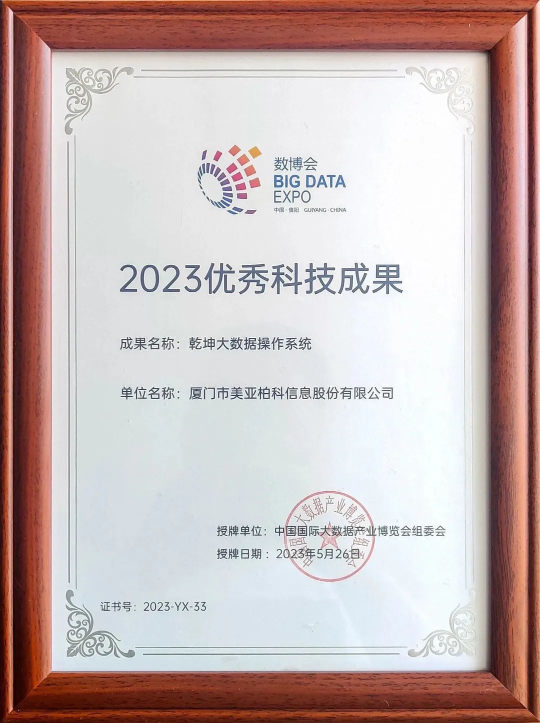美亚柏科 | “乾坤”斩获2023数博会“优秀科技成果”奖
