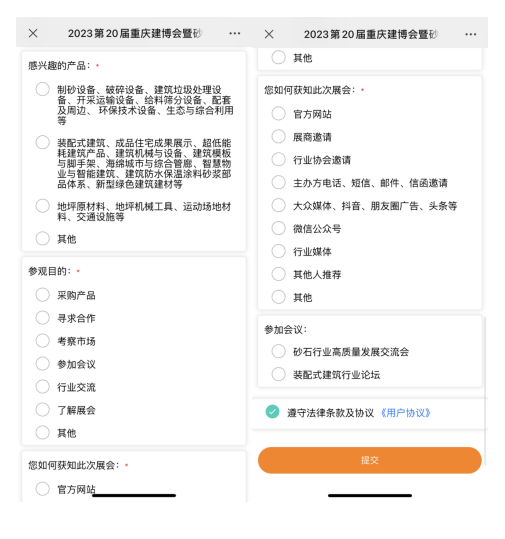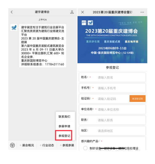 点击右下角菜单“参观参展→参观登记”
