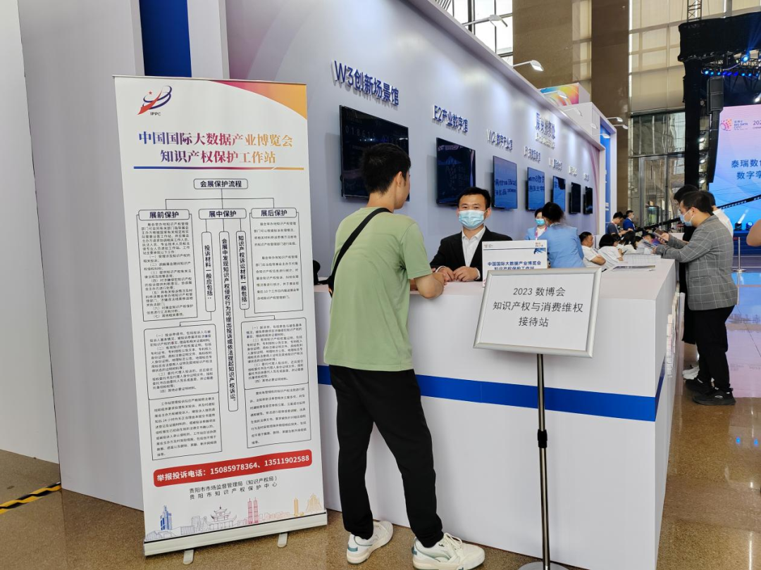 根据上级相关工作部署要求,为做好参会企业知识产权保护工作,“2023中国国际大数据产业博览会”期间,贵阳市知识产权保护中心在展会现场设立知识产权保护工作站,为参会企业开启一站式知识产权维权服务,保障企业合法权益。