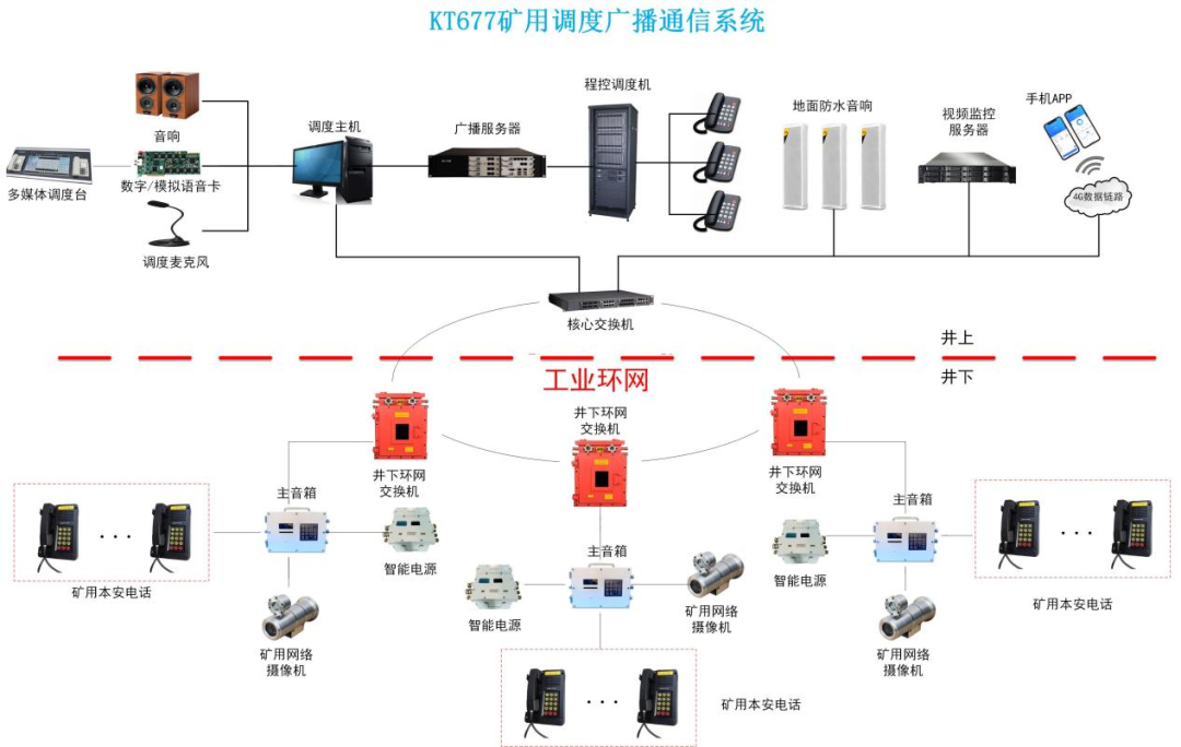 系统采用 TCP/IP 及新型总线为通信协议,主要分布在巷道、候车室、猴车沿线、皮带沿线、采煤工作面、掘进工作面等岗位上,能完全消除呼叫盲点,使井下作业、休息人员可清晰听见音箱广播声音和报警语音,并且可通过对讲音箱和井上、井下进行对讲通信。紧急情况下,调度人员可根据具体情况及时通知井下作业人员迅速疏散和撤离,并对采取的安全措施和应急救援提供必要的信息帮助。可以最大程度上避免安全事故的发生、最大程度上减少安全事故造成的损失。