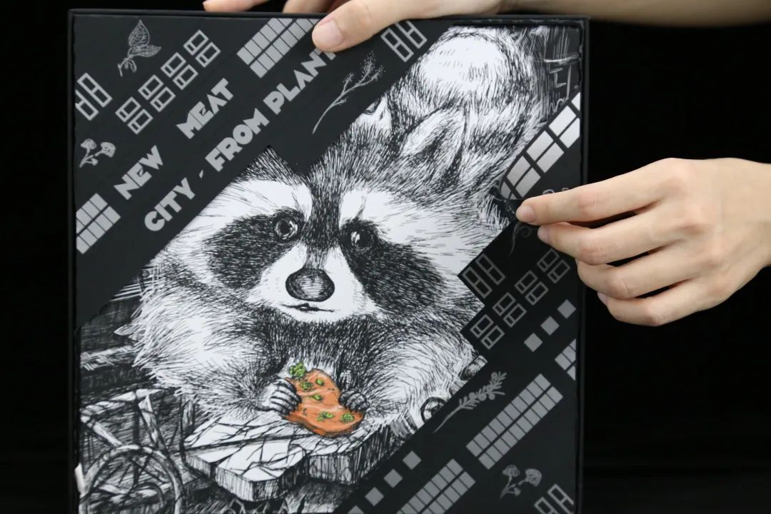 亮点:动物和高楼大厦如何共存?打开盒子必须要撕开印刷着一栋栋楼宇的黑色纸条。