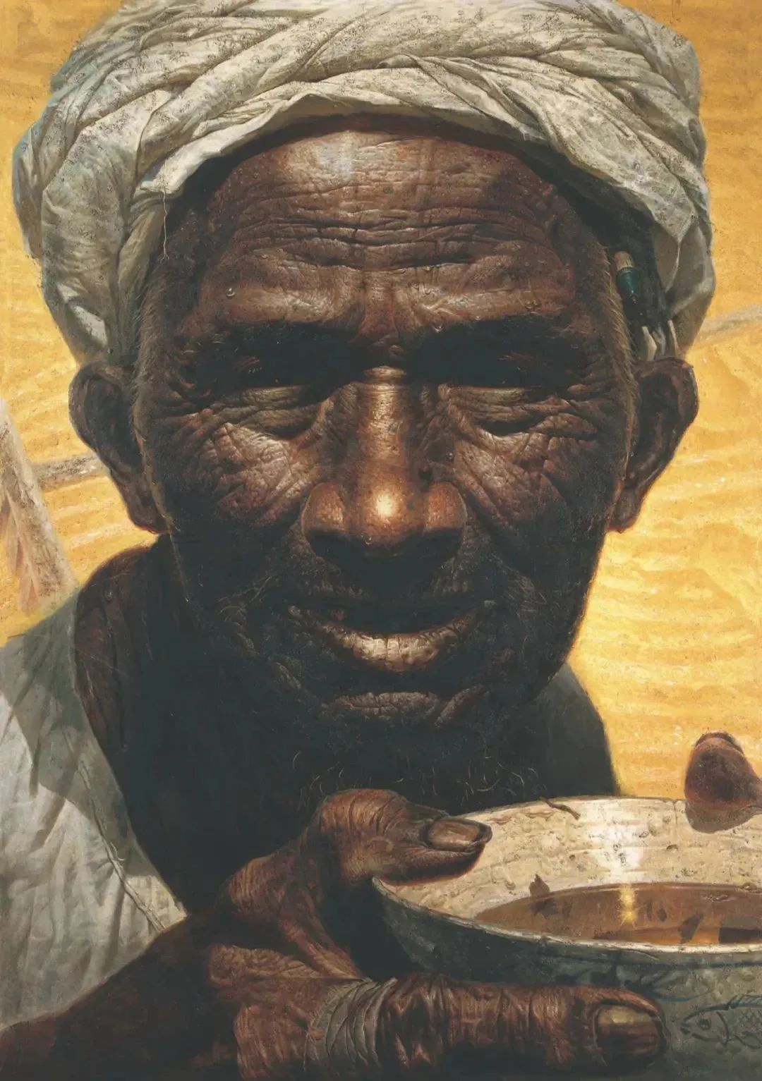 课本上出现过的罗中立的《父亲》也是整个展览中的热门作品,站在画前可以清晰地看见人物脸上的每一颗汗珠,还能发现很多印刷品上没能表现出来的细微之处。