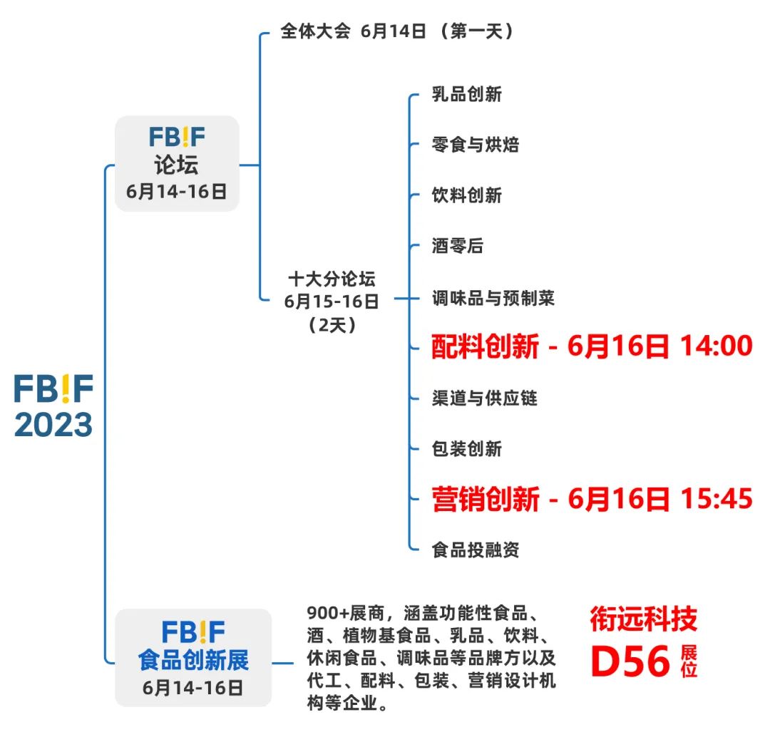 食品饮料创新论坛(FBIF)是亚太地区颇具行业影响力的食品盛会之一。FBIF始于2014年,通过分享全球范围内成功的商业案例、创新理念与技术,帮助行业从业者洞察未来趋势,找寻创新方向。FBIF目前已举办八届,历届会议吸引了来自全球多家百强食品饮料企业的参与。2023年(第九届)FBIF将于6月14-16日在深圳举办。FBIF食品创新展是在FBIF同期举办的食品饮料行业展览。展览聚焦创新,旨在为食品企业提供专业的展示和交流平台,与论坛相辅相成,共同推动行业发展。2023年FBIF展览面积扩大到62000平方米,预计参展商900+,截至2023年5月21日,已有超800家参展商预定了展位,其中包括酒、休闲食品、方便食品、饮料、植物基、乳品等215+品牌方,以及320+食品配料&代工类、150包装&设备类及80+营销&设计等共计800+食品行业相关供应商,此外,更有七大主办方独家策划的活动区贯穿展览旅程。