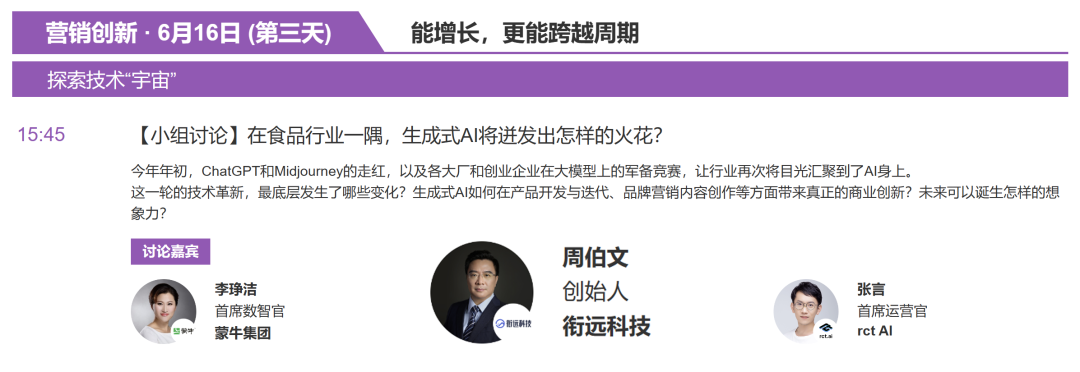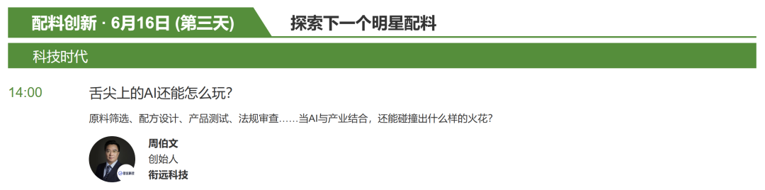 IEEE/CAAI Fellow、清华大学惠妍讲席教授/电子系长聘教授、衔远科技创始人 周伯文 将出席“FBIF2023食品饮料创新论坛”作主题演讲,并参与专题讨论:6月14日-16日,衔远科技(展位号:D56)将亮相“FBIF食品创新展”,与您现场交流如何“用AI重塑商品价值”:FBIF食品饮料创新论坛