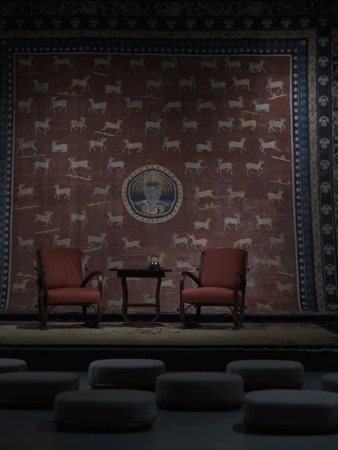 1727年,雍正让内务府画样、钦定了纹饰花样和织造人选。帝王厚爱、百姓青睐,伴随明清家具的辉煌,地毯亦迎来鼎盛时代。所谓“宝象”,是紫禁城金砖上的“盘金线银毯”,也是老宅院石板上的如意云纹毯。中国传统文化里总有浓淡变化和虚实相生,形而上之悟与形而下之度,是哲学的辩证,也是人生的体悟。万字纹、寿字纹等简洁图案的地毯,搭配风格简约、线条流畅的明式家具,是禅意的留白,是情志的含蓄。如意云纹、花团锦簇的地毯,雍容典雅、富贵明艳,和造型反复、雕刻精湛的清式家具一起,展现了积善之家的富贵雍容,也印刻了三百年时代的厚重。宁静致远,可以是满天星斗落人间,也可以是雨夜焚香诵道经。一把禅意、一方条案、一张旧毯、一缕暗香,这便是中式空间里的天地方圆。柏萧清雅、旃檀芬芳、沉香馥郁、奇楠高贵。香席上,金丝楠的宝匣里藏着千百年风华,小叶紫檀的香案上静置着传统文化的规矩和尺度。此刻天时地利人和,净手焚香,闭目轻嗅,香席间绵延回环,空间里祥瑞和合。