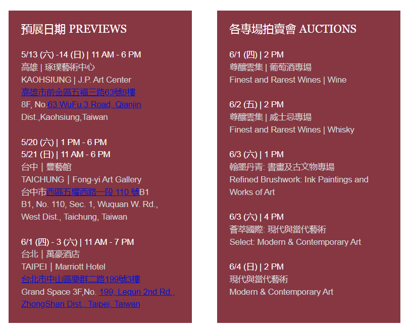 葡萄酒專場,匯聚炙手可熱的香檳品牌、經典波爾多珍釀、新舊世界美酒與珍稀勃根地紅白佳釀,豐富的藏品盼能滿足每一位藏家的收藏需求,邀請藏家們蒞臨參與。