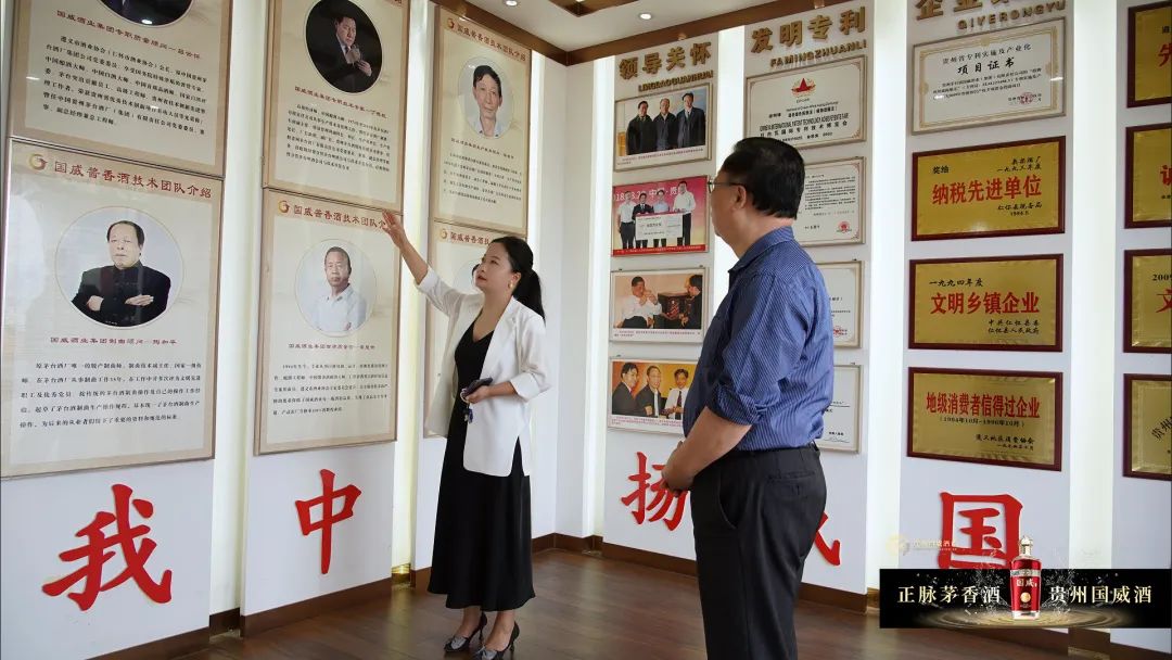 徐幼霖一行先是深入细致地参观考察了国威酒业的生产车间、藏酒库、植物埋藏区、品牌文化楼等地,对国威酒业坚守正脉茅香的生产工艺,以及守正创新的专利技术表示充分肯定。同时,对国威的未来发展,徐幼霖先生给出了许多宝贵意见。