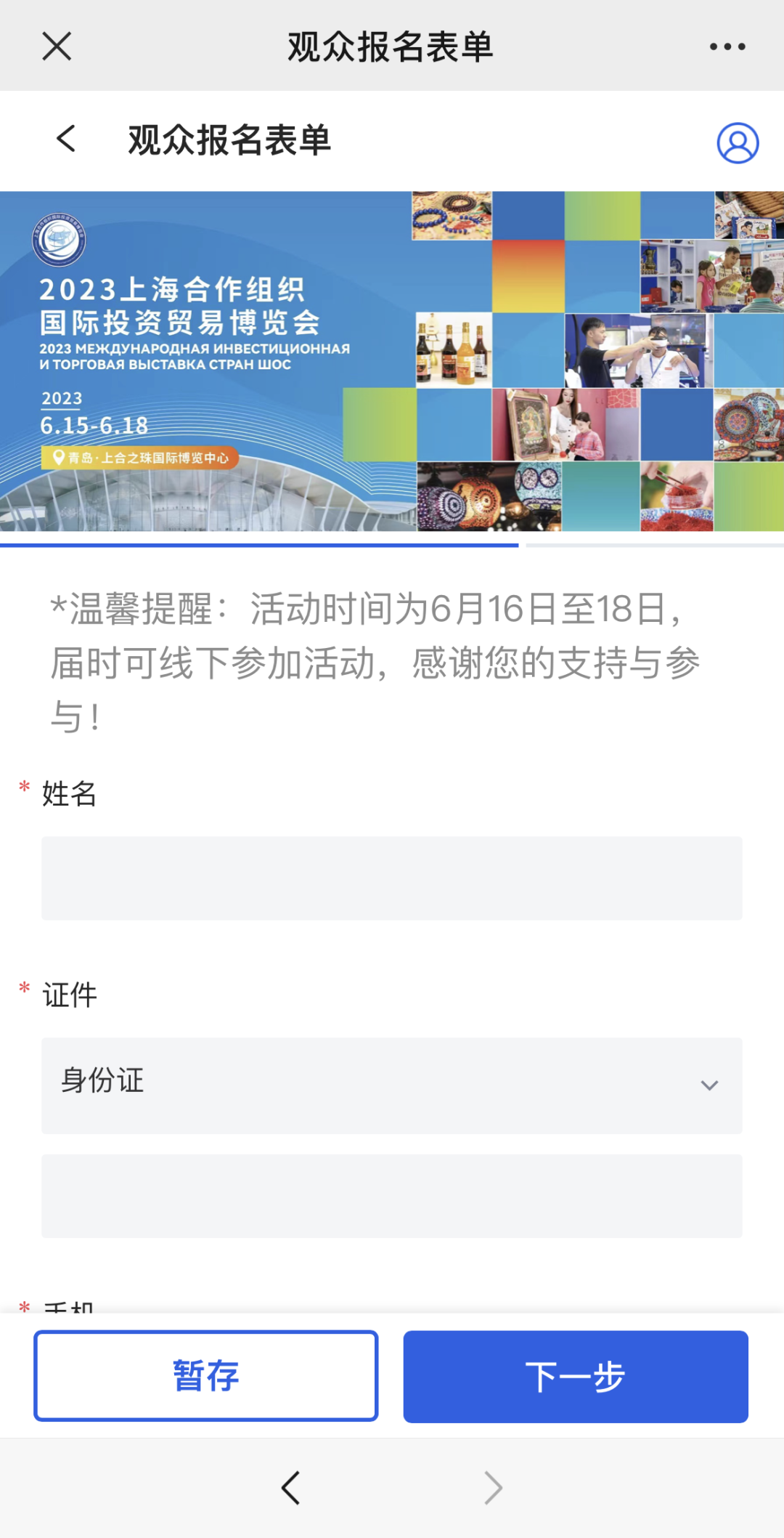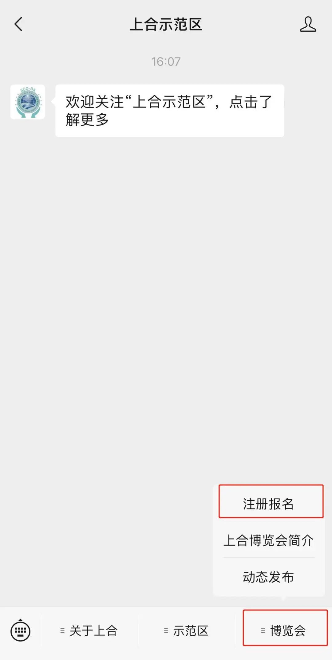 通过“上合示范区”微信公众号、“双链论坛暨上合博览会”微信公众号跳转至报名通道,步骤如下: