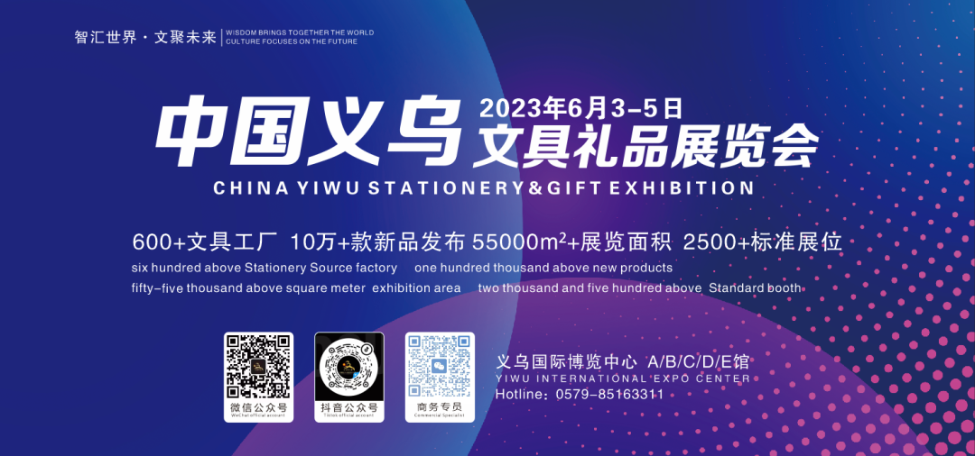 2023中国义乌文具礼品展览会将于6月3—5日在义乌国际博览中心盛大开展。感谢各参展商对本届展会的大力支持!