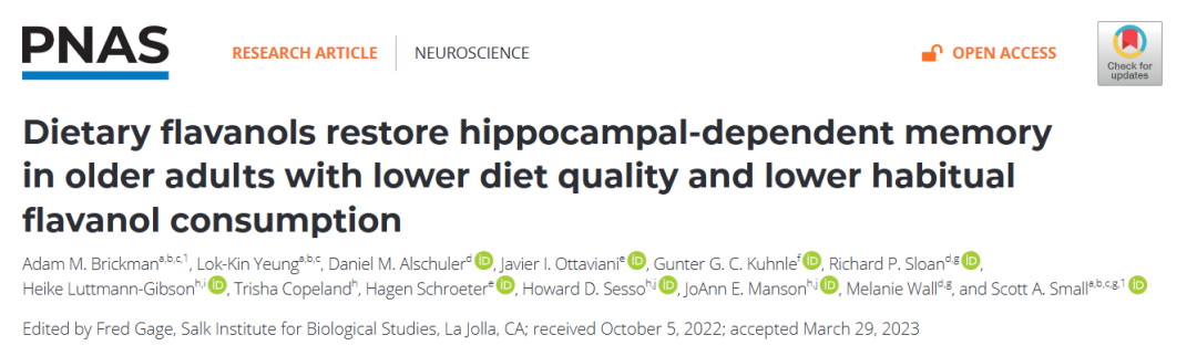 认知老化,用于描述我们的认知能力在衰老过程中下降,会给生活带来许多不便和负担。因此,确定与认知老化有关的生活方式或饮食习惯等可治疗的病因,可能会产生重要的公共卫生影响。2023 年 5 月 30 日,由哥伦比亚大学和哈佛大学布莱根妇女医院的研究人员合作在 PNAS 发表了一项研究论文 Dietary flavanols restore hippocampal-dependent memory in older adults with lower diet quality and lower habitual flavanol consumption。这项大规模研究首次确定,黄烷醇(某些水果和蔬菜中发现的营养素)含量低的饮食会导致与年龄相关的记忆丧失,在 60 岁以上轻度黄烷醇缺乏的人群中补充黄烷醇可以改善记忆。膳食黄烷醇是茶、苹果、红酒、可可和其他水果和蔬菜中常见的生物活性化合物。这一发现还支持了一种新兴的观点,即衰老的大脑需要特定的营养物质才能获得最佳健康,就像发育中的大脑需要特定的营养物质才能正常发育一样。「确定对婴儿神经系统正常发育至关重要的营养物质是 20 世纪营养科学的最高成就,」该研究的作者——哥伦比亚大学 Scott Small 教授说,「在本世纪,随着我们寿命的延长,研究开始揭示,强化我们日益衰老的大脑需要多种不同的营养物质。我们的研究依赖于黄烷醇摄入的生物标志物,可以被其他研究人员用作模板,以确定额外的必要营养素。」最新研究建立在 Scott Small 教授团队过去 15 年的研究基础之上。先前的研究表明,年龄相关的记忆丧失与齿状回的变化特别相关,黄烷醇改善了这个大脑区域的功能。齿状回是大脑海马体中的一个特定区域,对学习新记忆至关重要。在小鼠中的进一步研究发现,黄烷醇——尤其是黄烷醇中的一种叫做表儿茶素的生物活性物质——通过促进神经元、血管和海马的生长来改善记忆。接下来,Scott Small 团队在人体中测试了黄烷醇补充剂。一项小型研究证实,齿状回与认知老化有关。另一项更大规模的试验表明,黄烷醇通过选择性地作用于这一大脑区域来改善记忆,对那些一开始饮食质量不高的人影响最大。在这项最新研究中,哥伦比亚大学团队与哈佛大学布莱根妇女医院的研究人员合作,研究了黄烷醇和多种维生素在 COSMOS 研究(COcoa Supplements and Multivitamin Outcomes Study)中的作用。目前这项名为 COSMOS-Web 的研究旨在在更大的人群中测试黄烷醇的影响,并探索黄烷醇缺乏是否会导致大脑齿状回区域的认知衰老。3500 多名健康老年人参与了这项研究,他们被随机分配到每日服用黄烷醇补充剂(药片形式)或安慰剂,时长为期 3 年。他们服用的活性补充剂中含有 500 mg 黄烷醇,其中包括 80 mg 表儿茶素,这是建议成年人从食物中摄入的剂量。在研究开始时,所有参与者都完成了一项调查,以评估他们的饮食质量。然后,参与者进行了一系列基于网络的测试活动,这些活动由研究团队设计并验证,以评估由海马体控制的短期记忆类型。这些测试在第 1 年、第 2 年和第 3 年重复进行。超过三分之一的参与者还提供了尿液样本,使研究人员能够在研究之前和期间测量膳食黄烷醇水平的生物标志物。这为研究提供了一种更精确的方法来确定黄烷醇水平是否与认知测试的表现相对应,并确保参与者坚持他们分配的饮食方案(在整个研究过程中依从性很高)。对于每天服用黄烷醇补充剂的整个参与组来说,记忆得分仅略有改善。但在服用黄烷醇补充剂的第一年结束时,报告饮食较差且黄烷醇基线水平较低的参与者的记忆得分与安慰剂相比平均增加了 10.5%,与基线记忆相比增加了 16%。年度认知测试显示,观察到的改善至少持续了两年。研究结果表明,补充黄烷醇对没有黄烷醇缺乏症的人没有影响,但是可以改善低黄烷醇水平人群的记忆力。并且,黄烷醇仅改善了由海马体控制的记忆过程,没有改善大脑其他区域介导的记忆。研究人员表示,结果强烈表明黄烷醇缺乏是与年龄相关的记忆丧失的驱动因素,因为黄烷醇的消费与记忆评分相关,黄烷醇补充剂改善了黄烷醇缺乏症成年人的记忆力。Scott Small 说:「我们还不能明确地得出结论,单独饮食中黄烷醇的低摄入量会导致记忆表现不佳,因为我们没有进行相反的实验——在不缺乏黄烷醇的人中消耗黄烷醇」,他补充说这样的实验可能被认为是不道德的。确认黄烷醇对大脑影响的下一步是进行临床试验,以恢复严重黄烷醇缺乏症成人的黄烷醇水平。1.https://www.pnas.org/doi/10.1073/pnas.2216932120传播优质学术报道,深度解读学术文章