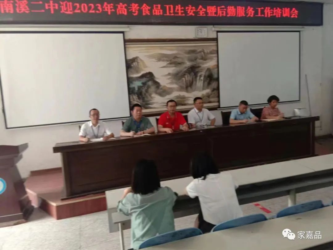 5月30日上午,四川省家嘉品食品有限公司董事长、总经理吴云刚在南溪二中迎2023年高考食品卫生安全暨后勤服务工作培训会上,与南溪二中相关领导共同为高考期间的食品卫生安全、后勤服务工作等建言献策,保障考生以良好的状态和充沛的精力投入高考,让学生吃得健康,让学校省心、家长安心,助推学生安全参考、舒心参考。
