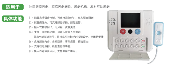 服务监管一直是个难题,复杂的监管设备既不好操作也不便宜。互助养老设备——刷卡呼叫器的出现解决了这问题,老年人通过按下呼叫器或者拉动拉绳,通过虚拟电话呼入绑定服务人员电话,需要服务时随时呼叫,服务人员需上门刷卡验证,才可以服务,起到有效监管的作用,同时刷卡呼叫器还有语音定制,定时点卯功能等,既是呼叫监管设备也有陪伴功能。