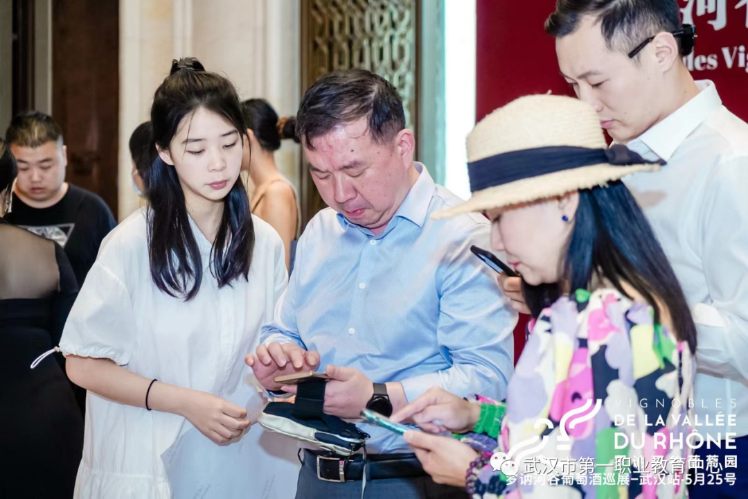 受法国商务投资署武汉办公室邀请,我校商贸服务部教师周静怡、刘惠慈带领20级和21级高星级饭店运营与管理专业部分学生参与了这两个葡萄酒盛会。