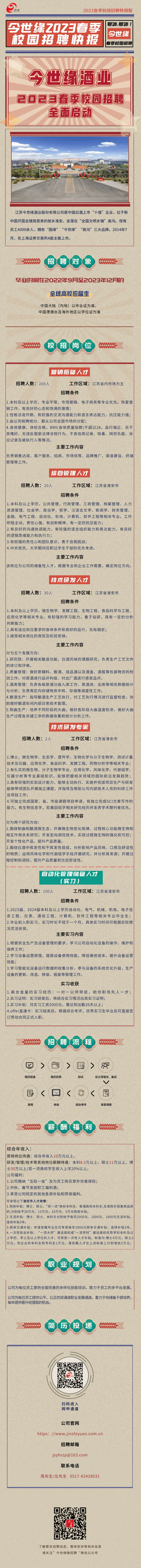少量岗位,仍可报名 | 今世缘酒业2023春季校园招聘!