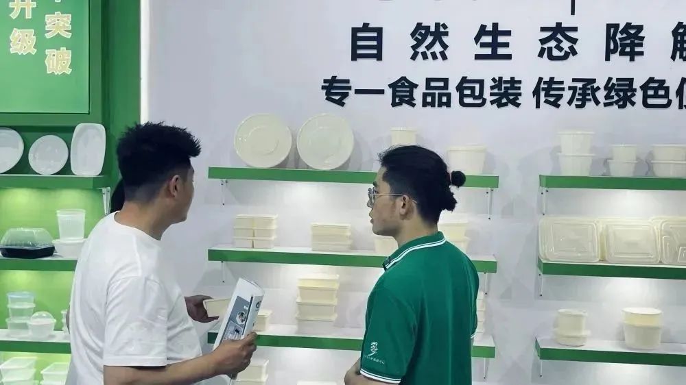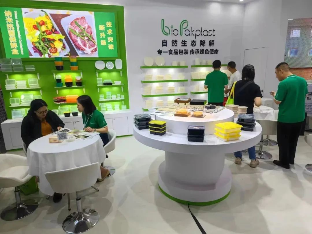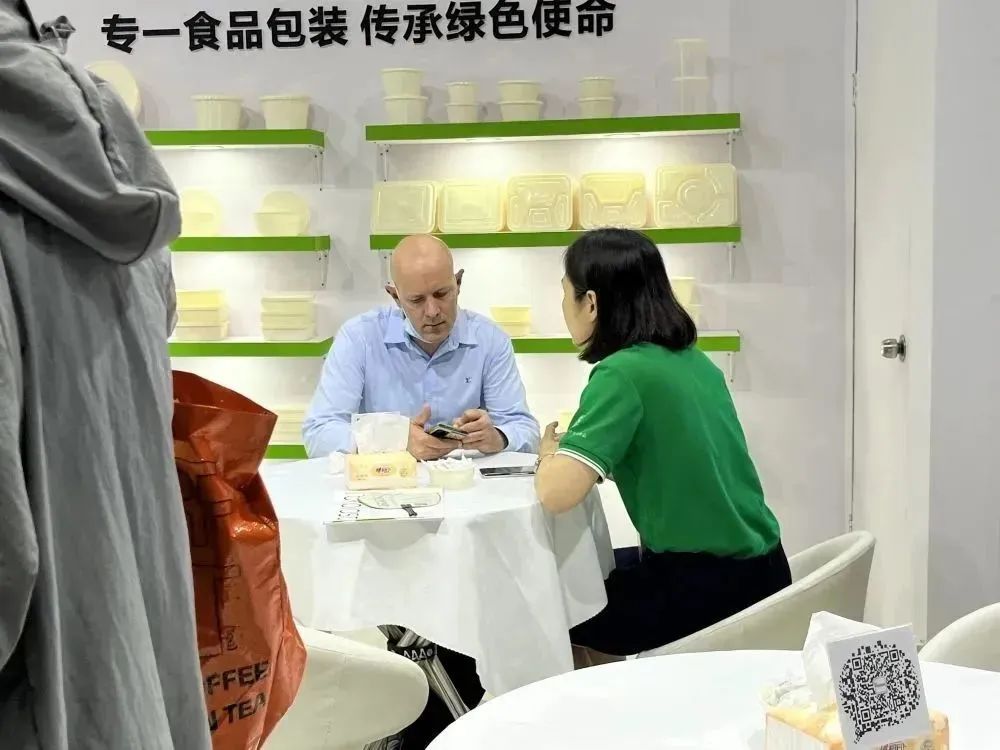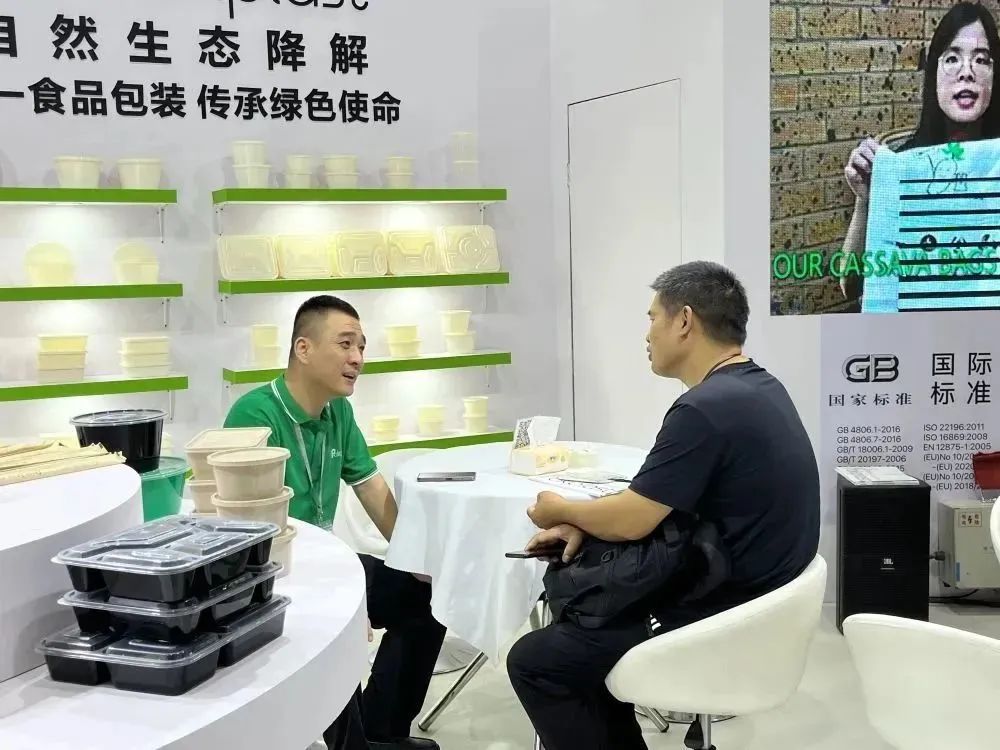 展会现场,我们向来自世界各地的访客介绍自然生态降解餐盒。