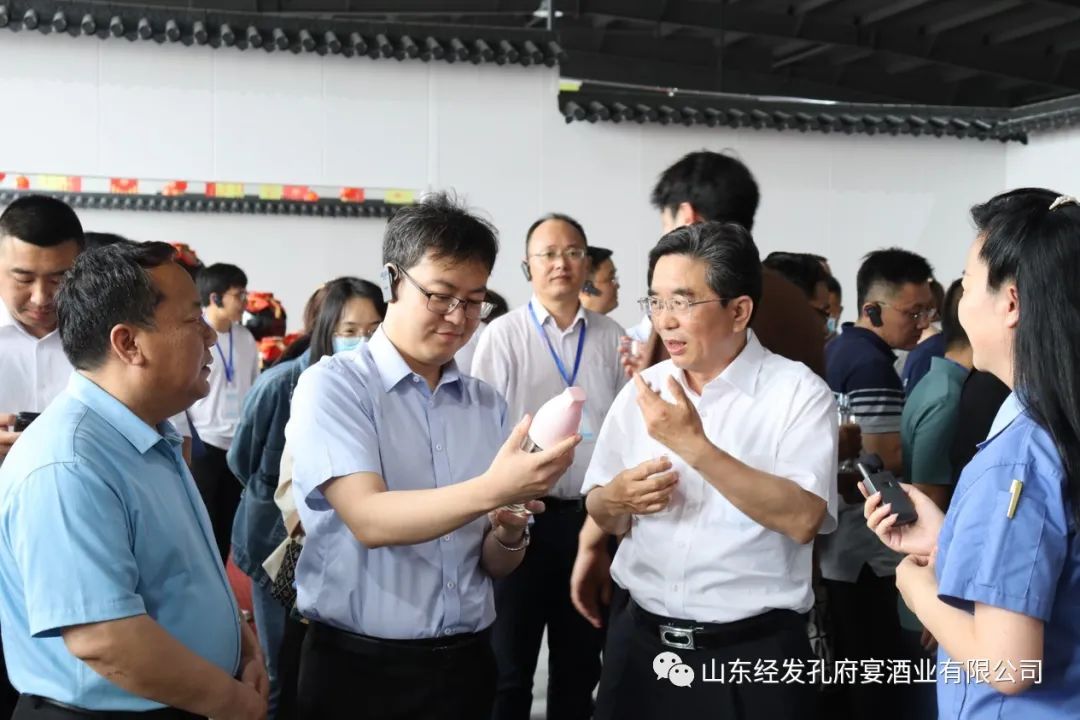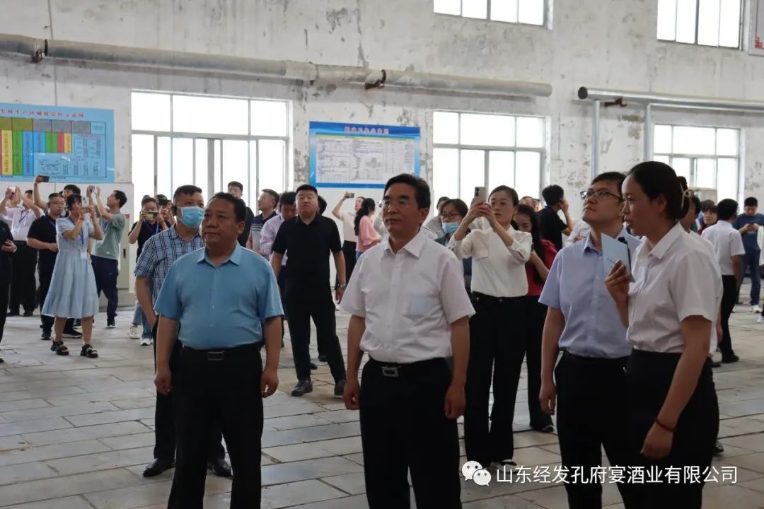 在孔府宴酒业党支部副书记、总经理李强的带领下,考察组一行先后前往酿酒车间、封藏体验馆实地查看,现场了解孔府宴酒工艺特点、工艺流程并对孔府宴原酒、成品酒进行现场品评,给予高度评价和充分肯定。