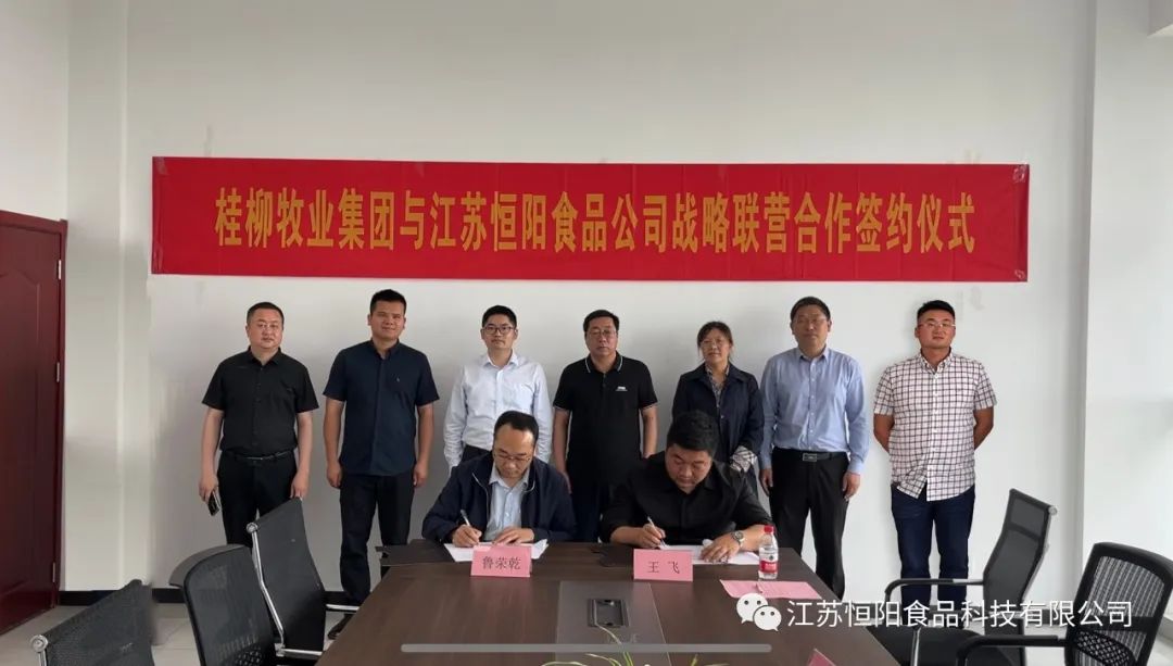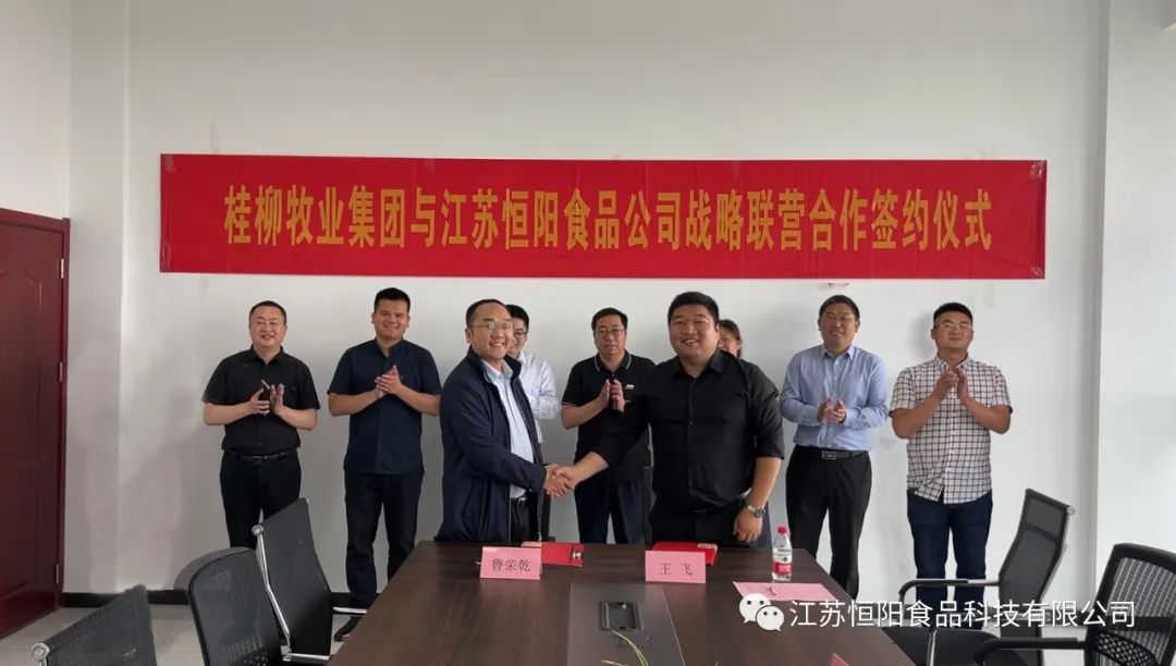 两家公司共同战略联营,桂柳牧业集团和江苏恒阳食品公司共同出资成立桂柳恒阳(江苏盐城)食品有限公司,联营公司主营生猪养殖及食品加工,规划未来三年内养殖规模达到年上市50万头生猪及6000吨肉品,年产值达10亿元以上,新增300个就业岗位,直接带动270户增收,打造盐城地区本土第一养殖龙头企业。