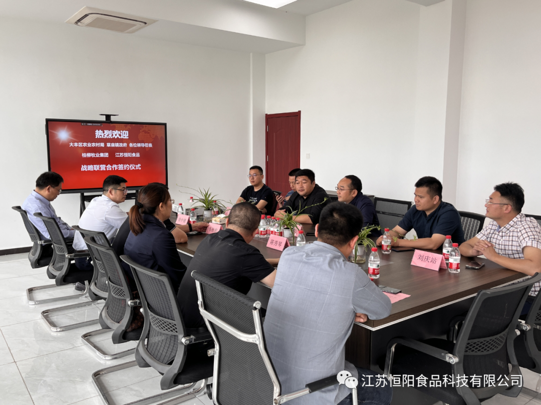 每一次决策都将公司发展推向新的高度,恒阳食品迎来了又一个重要的时刻。2023年5月31日,在公司总部,江苏恒阳食品科技有限公司与广西桂柳牧业集团战略联营合作协议成功签约。大丰区农业农村局领导、草庙镇政府领导一起见证了此次签约仪式。与桂柳牧业集团的联营合作,是恒阳食品发展的战略决策,挂大靠强,以期实现互补式、嵌入式、融合式发展,打造1+1>2的合作共赢新局面。